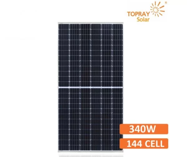 Tấm pin năng lượng mặt trời Topray 340Wp cho hệ thống Điện mặt trời áp mái, nhà xưởng, điện mặt trời độc lập và cho hệ thống bơm nước năng lượng mặt trời. Bên cạnh công nghệ pin năng lượng mặt trời đa tinh thể (Poly) và đơn tinh thể (Mono) thì tấm pin công nghệ Hafl cell cũng đang là lựa chọn thịnh hành nhất hiện nay. Topray một công ty có trụ sở tại Thâm Quyến – Trung Quốc đã áp dụng ngay công nghệ mới này vào các dòng pin dân dụng của mình.