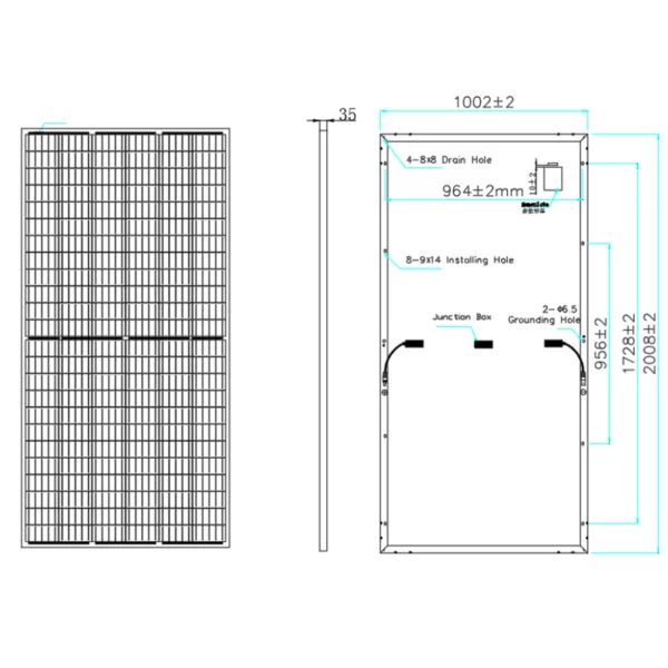 - Mạch mô-đun được tách thành hai phần được kết nối song song. Kết hợp với các điốt bypass tích hợp, cung cấp hiệu suất tốt hơn khi bị che bóng.
